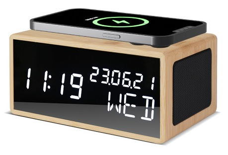 [우드쇼] R1501 블루투스 스피커 15W 고속 무선충전 리얼우드시계_리얼우드