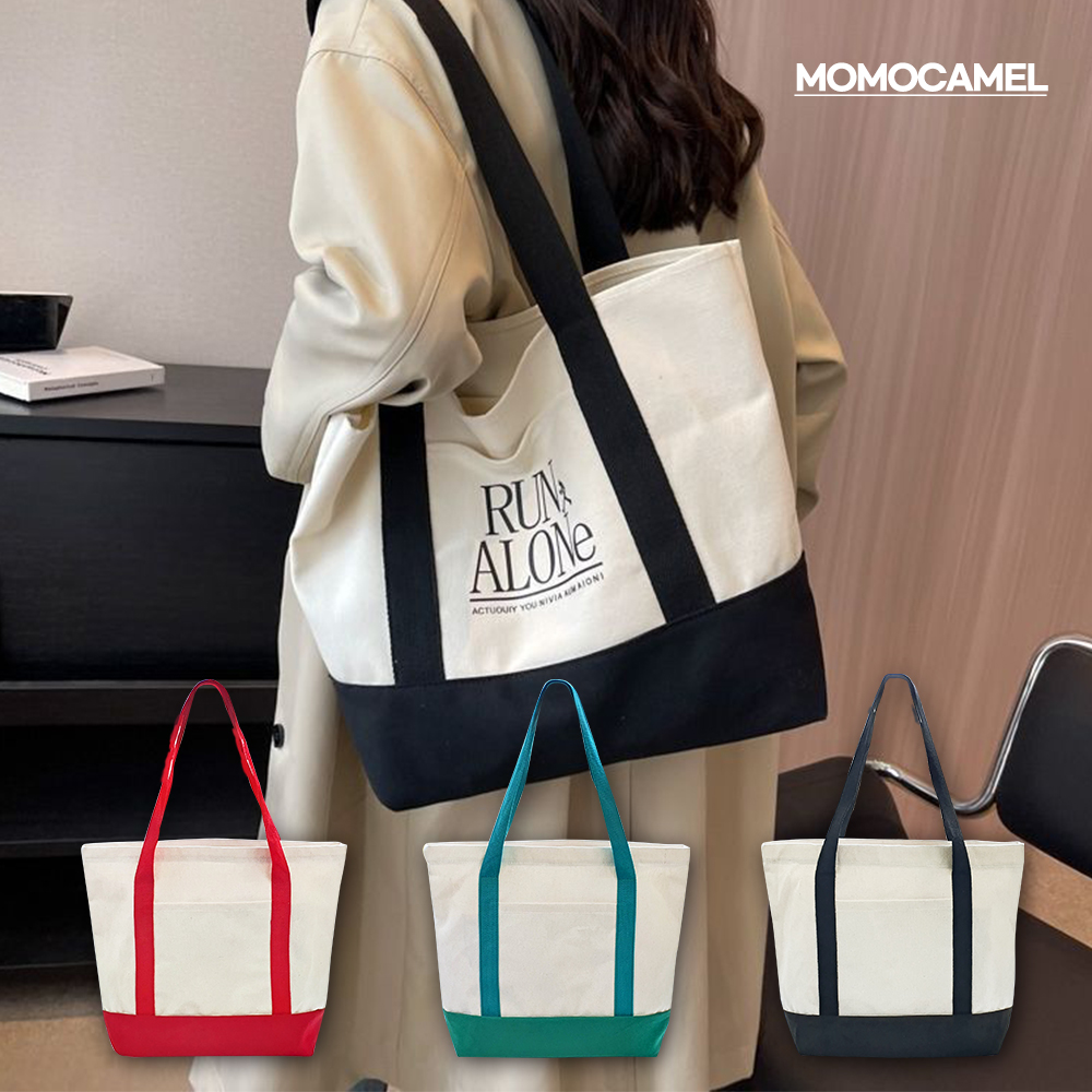 [모모카멜] 투톤컬러포켓에코백 (45*36*12cm)
