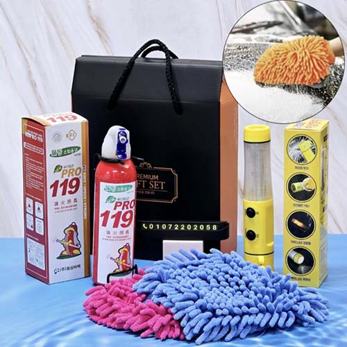 [선물세트] 비상용 안전용품 소화기 + 위기탈출 망치 후레쉬 랜턴 + 주차번호판+ 청소 장갑